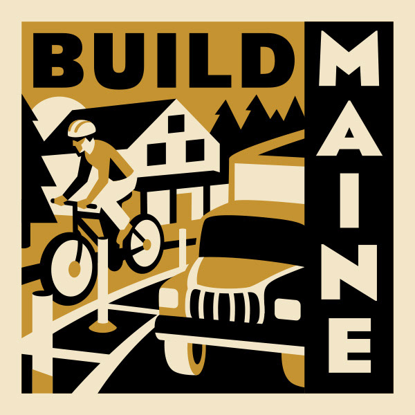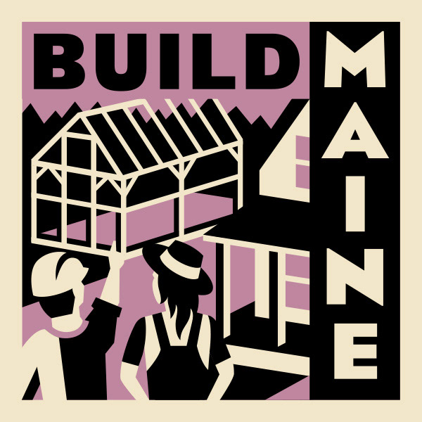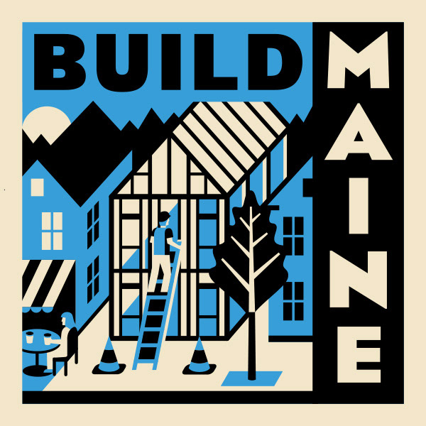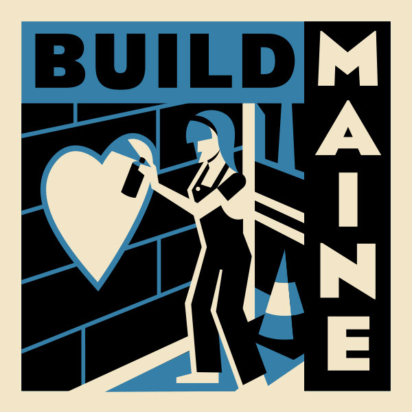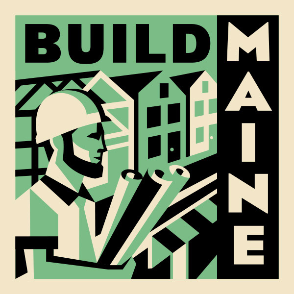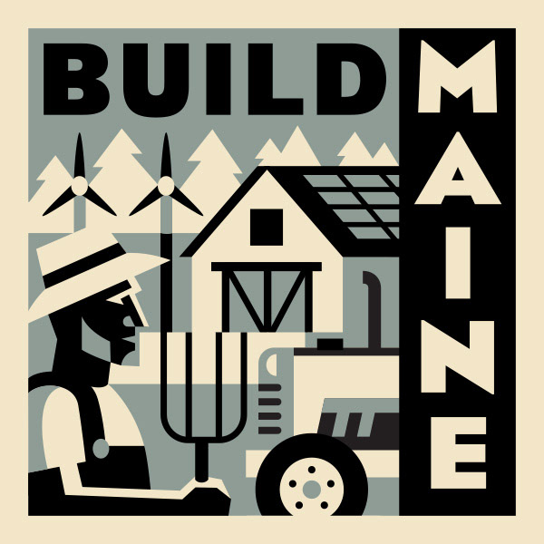 Annual Build Maine Conference Logo + Sticker Design. Based on WPA-style illustrations, each year features the same recognizable frame but with a distinct palette + subject.