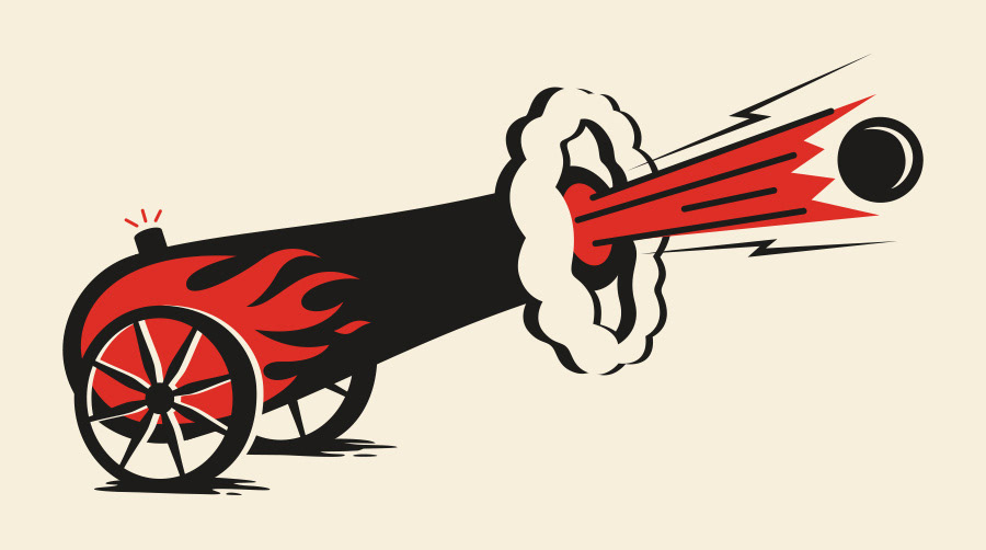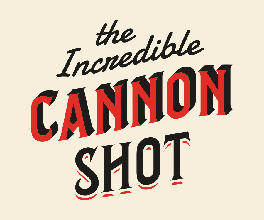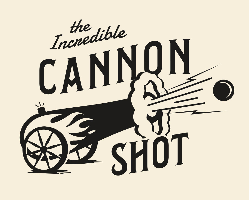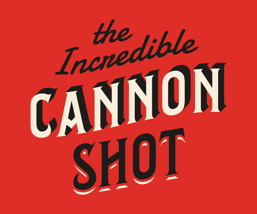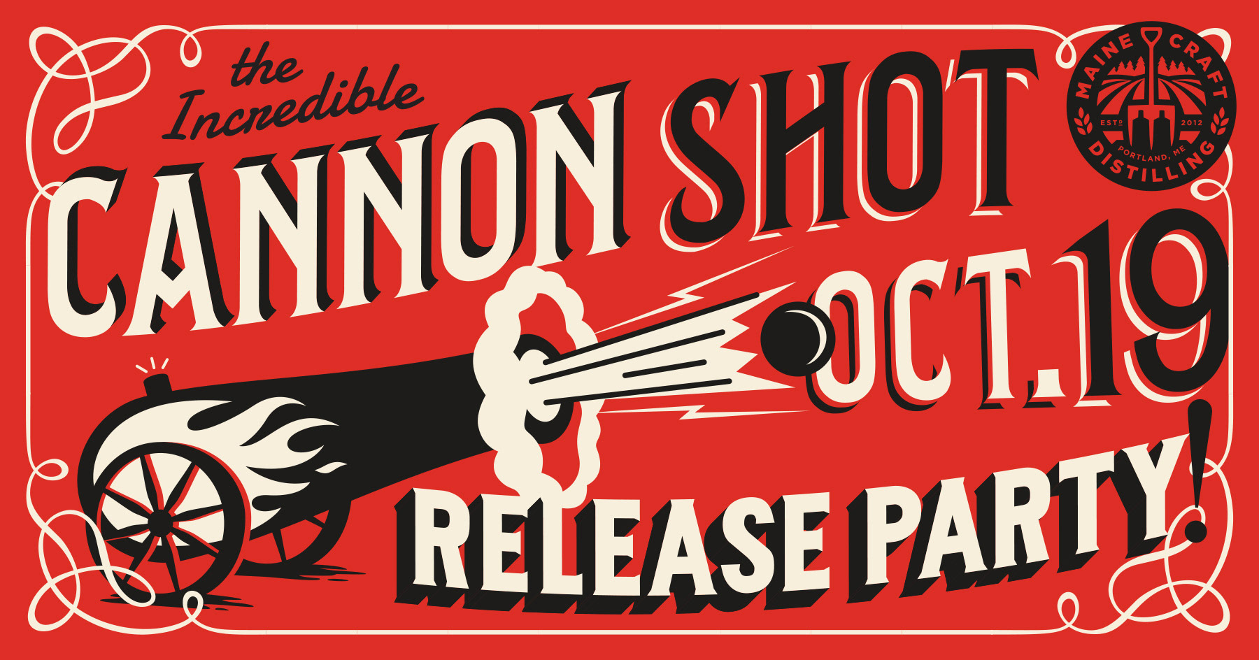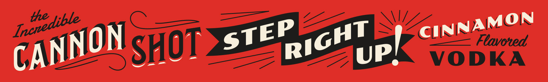 Artwork for Maine Craft Distilling's Cannonshot Vodka brand, featuring vintage carnival-inspired designs and illustrations.