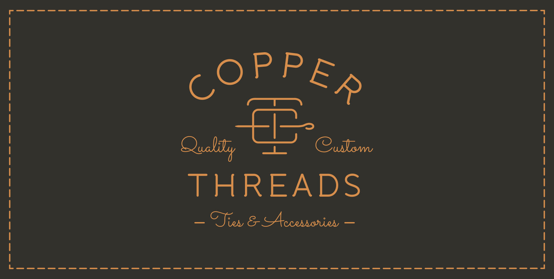 Identity design for Copper Threads custom-printed ties + accessories, featuring a CT monogram in the shape of a spool of thread. The vintage + classic aesthetic provides wide age appeal as well.