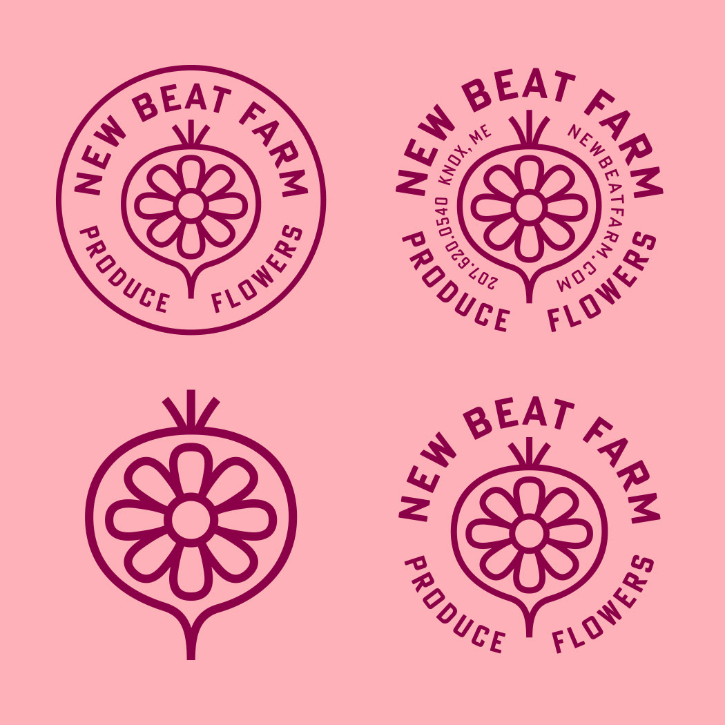 Logo design featuring a bold symbol that directly connects to their product (produce + flowers) and also the name. A series of modern + bright product labels were also created.