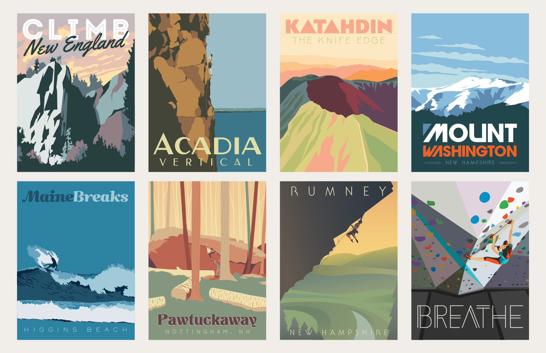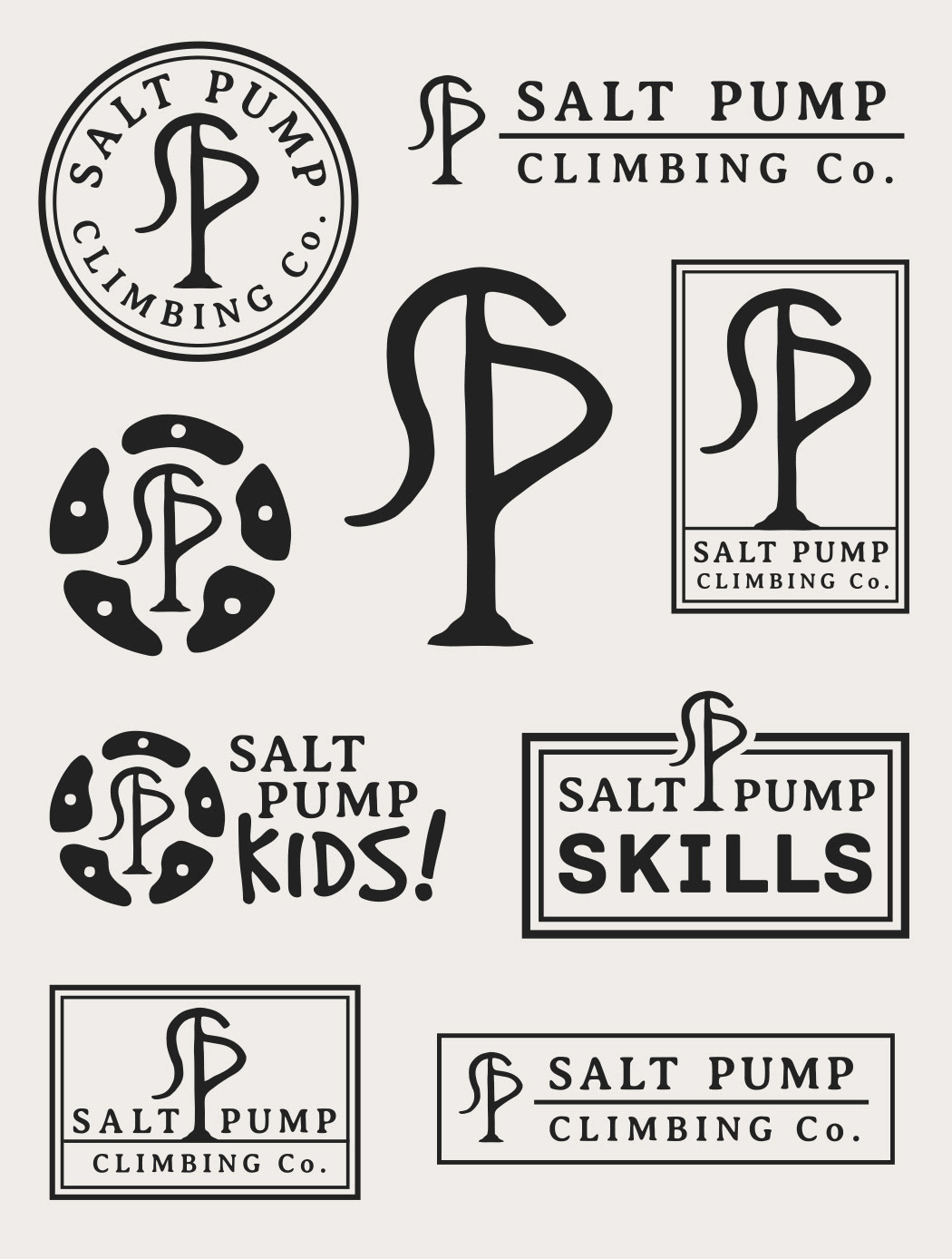 Logo design for Salt Pump indoor climbing gym. Along with logos, graphics + apparel design, we illustrated a series of stylized climbing posters for sale on their site.