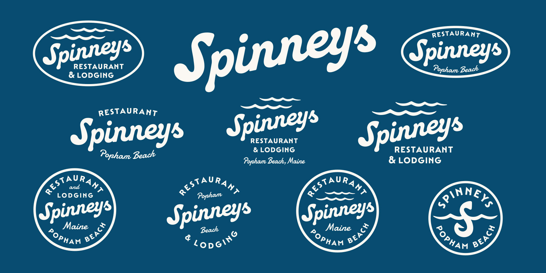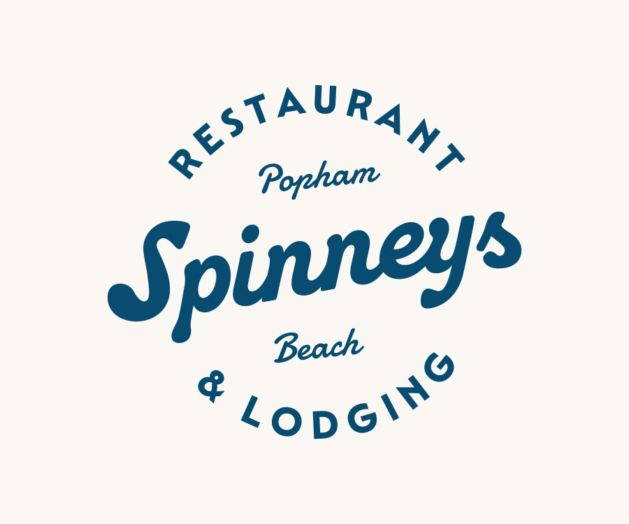 Various logo designs and treatments for Spinneys Restaurant & Lodging, a casual oceanfront seafood spot near Popham Beach.